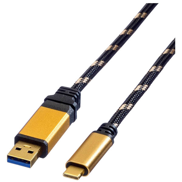 Roline 11.02.9013 USB cable black gold shielded USB-A to USB-C 1m