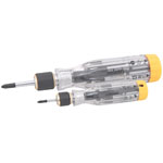 The Rolson 6 in 1 Quick-Change Screwdriver (2-Piece Set) - a set of 2 quick-change screwdrivers with a selection of interchangeable bits. To change bit, simply twist cap, select bit, tilt downward, slide out and lock in place.
