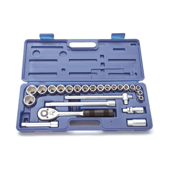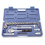A 24-piece, 1/2in. drive, Chrome Vanadium socket set in a handy plastic storage/carry case.