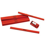 A pack of 12 oval-section Carpenter's Pencils with a purpose-designed sharpener.