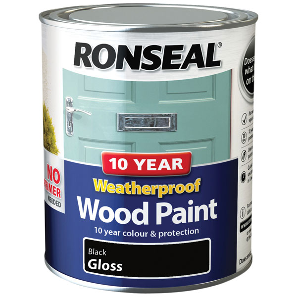 Ronseal 38772 10 Year Weatherproof Wood Paint Black Gloss 750ml