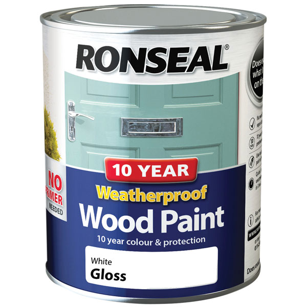 Ronseal 38773 10 Year Weatherproof Wood Paint White Gloss 750ml