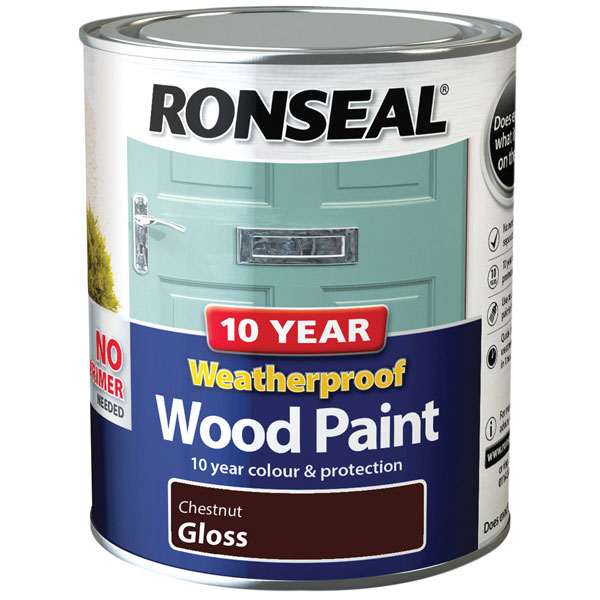 Ronseal 38775 10 Year Weatherproof Wood Paint Chestnut Gloss 750ml