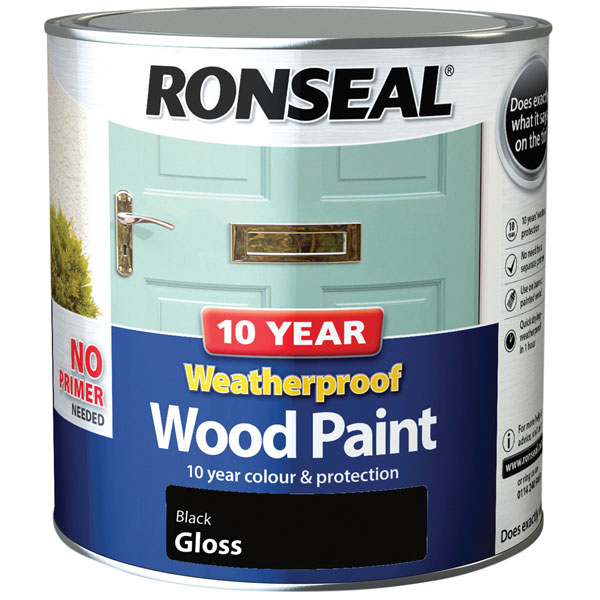 Ronseal 38781 10 Year Weatherproof Wood Paint Black Gloss 2.5 litre