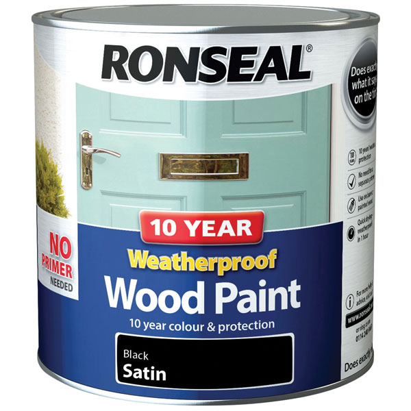 Ronseal 38794 10 Year Weatherproof Wood Paint Black Satin 2.5 litre