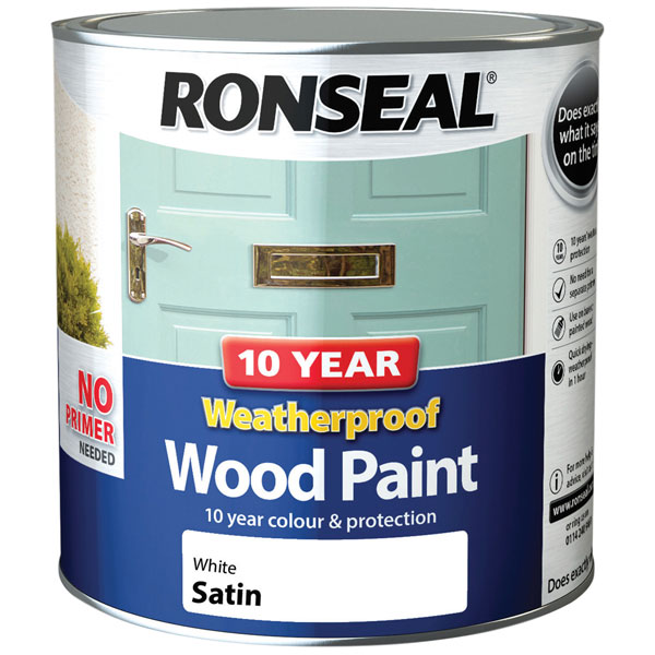 Ronseal 38795 10 Year Weatherproof Wood Paint White Satin 2.5 litre