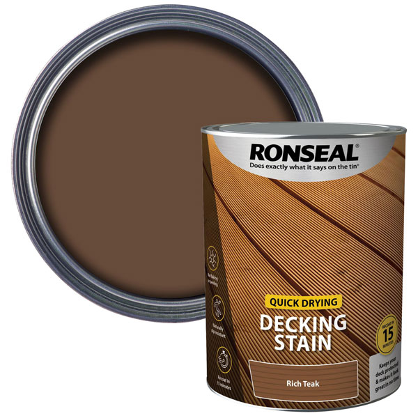 Ronseal 39087 Quick Drying Decking Stain Rich Teak 5 litre