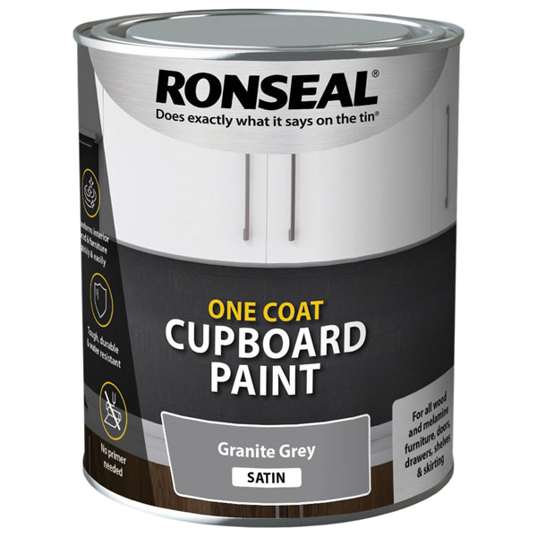 Ronseal 39371 One Coat Cupboard Paint Granite Grey Satin 750ml