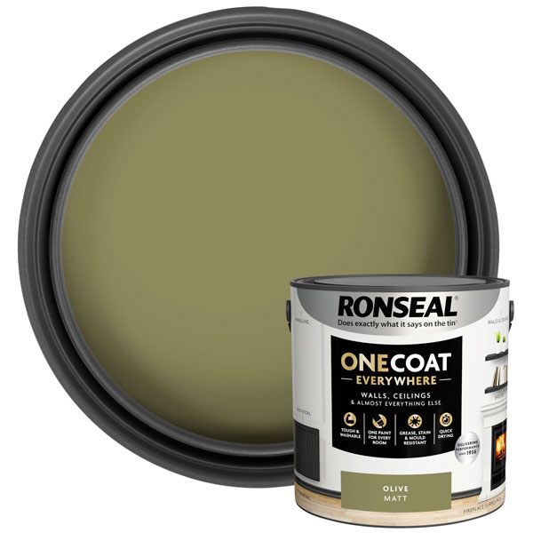 1 x Ronseal One Coat Everywhere Interior Paint Olive Matt 2.5 litre.