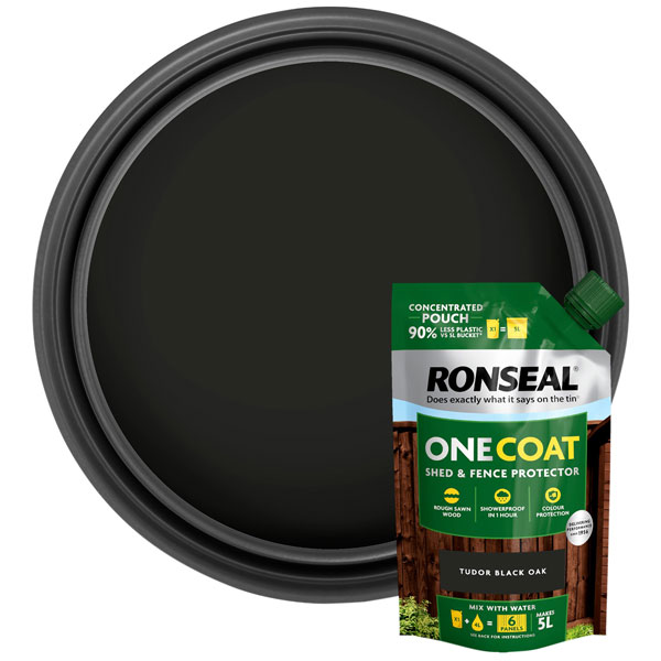 The Ronseal One Coat Shed & Fence Protector. It does exactly what it says on the tin. Except, this one doesn't come in a tin or a bucket, it comes in a pouch! It's exactly the same as our ready-mixed One Coat Shed & Fence Protector buckets, the only difference is you just mix it with water at home. That means this little pouch is perfect for using as a refill.