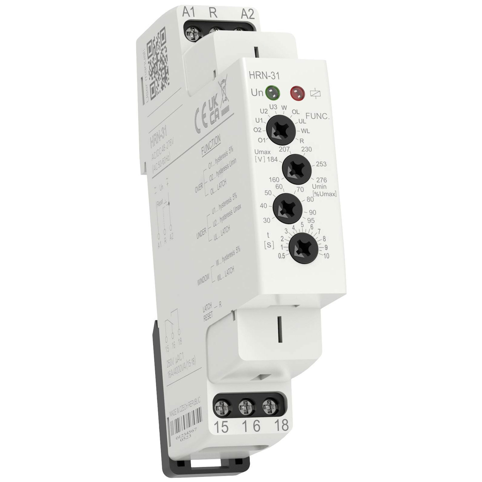 The monitoring relay by Rose LM, model HRN-31, offers reliable voltage surveillance for 276 V AC or DC systems. This device features one change-over contact for versatile integration. Ideal for industrial and commercial environments, it ensures optimal performance and safety in electrical installations.