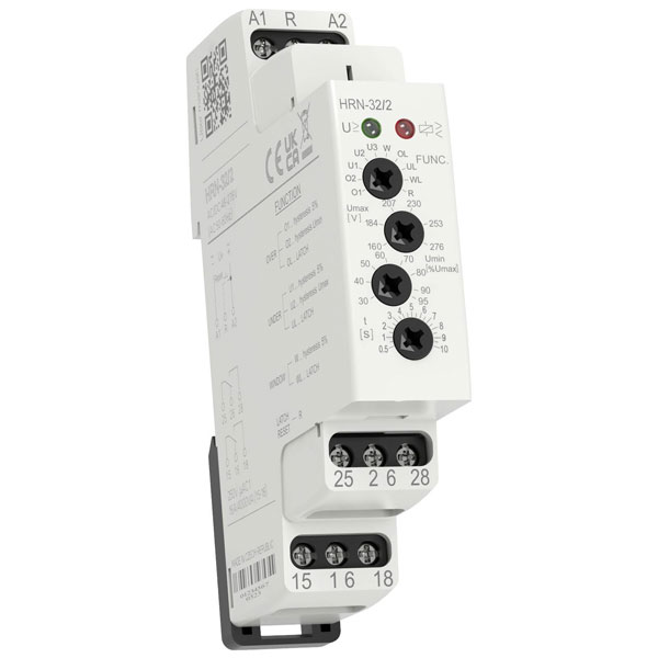 Rose LM manufactures the HRN-32/2 monitoring relay, which can handle both 276 V AC and DC voltages. It features a single change-over contact. This relay is typically used for monitoring electrical systems to ensure they operate within specified voltage limits.