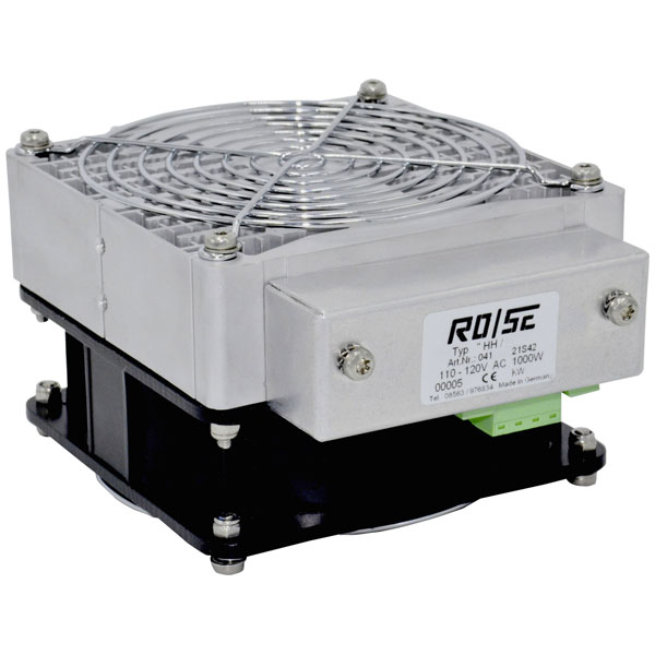 The Rose LM enclosure fan heater HHS1000 is designed to provide efficient heating for electrical cabinets with a power rating of 1000 W and dimensions of 150 x 125 x 85 mm. Ideal for maintaining optimal operating conditions in switchboards, this heater supports an input voltage range of 220 - 240 V AC. Commonly used in climatisation systems, it serves as a crucial component in preventing temperature-related issues in cabinets and enclosures.