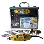 This rotary tool kit from Rotacraft features a compact rotary tool with variable speed, making it ideal for hobbies, electronics, DIY and crafts. The tool offers a choice of two comfortable grip positions - pen and palm - and comes supplied in an aluminium carry case.