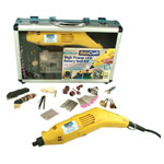 This rotary tool kit from Rotacraft features a compact rotary tool with variable speed and LCD display (exact speed control), making it ideal for hobbies, electronics, DIY and crafts. The tool offers a choice of three comfortable grip positions - pen, pistol and palm - and comes supplied in an aluminium carry case.
