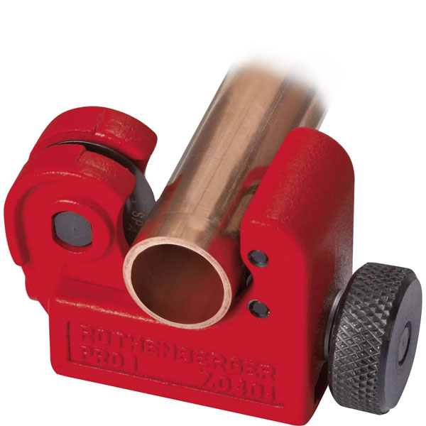 Rothenberger's Minicut I Pro 70401 is a compact pipe cutter designed for precise cutting of small diameter pipes. It features robust construction suitable for both professional and DIY applications. Ideal for use with copper, brass, and aluminium tubing, it ensures clean, accurate cuts.