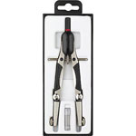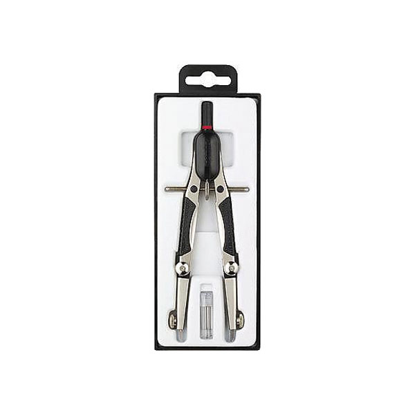 The Rotring S0676570 compact geometry compass has a precision radius adjustment via its central wheel. Ergonomic grip zones and handhold depressions ensure a solid grip when drawing.
