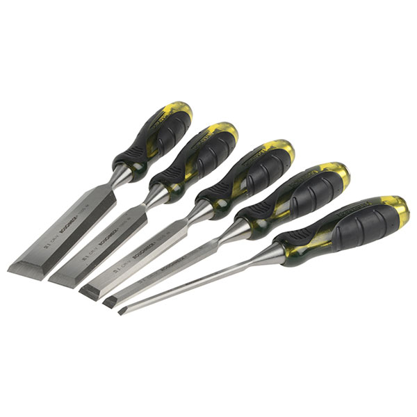 This 5 piece Wood Chisel set contains the following sizes: 6mm (1/4in), 13mm (1/2in), 19mm (3/4in), 25mm (1in), and 32mm (1.1/4in).
