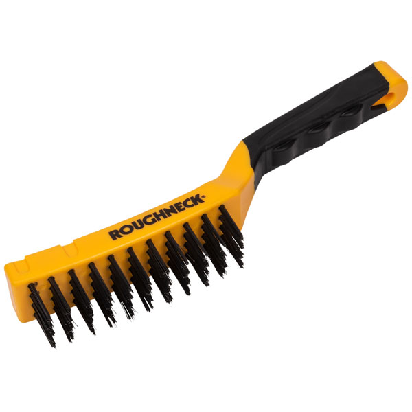 Roughneck Carbon Steel Wire Brush is a 4 row general purpose wire brush is a 300mm (12in) brush with 11 sets of anodised carbon steel bristles and a TPR soft-grip handle.