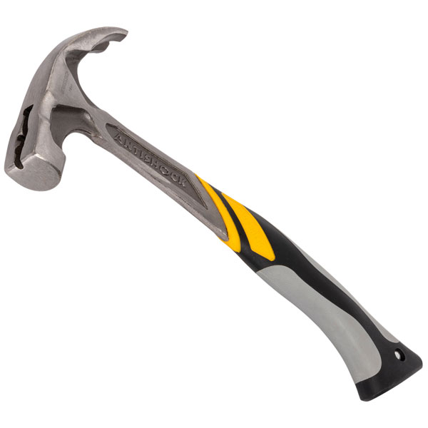 Roughneck Claw Hammer with has a solid one piece forged steel handle, hardened and tempered, fully polished head and handle for extreme strength. It also features an anti-shock handle to reduce fatigue.