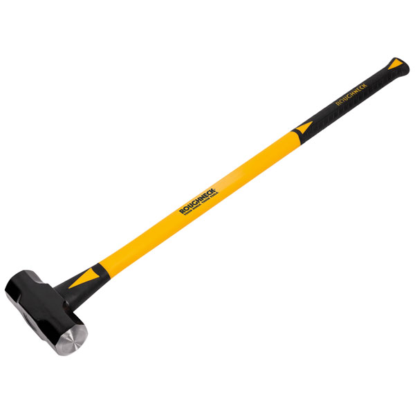 Roughneck Sledge Hammers with fibreglass handles are manufactured from drop-forged alloy steel hardened and tempered, with 8-sided 45 degree chamfered precision milled faces.