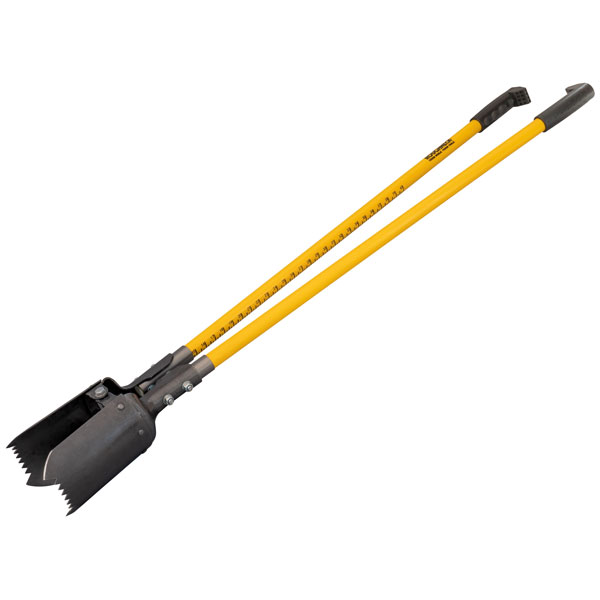Fitted with solid fibreglass core handles for increased strength and durability. Ergonomic grips with integrated knuckle protectors ensure comfort in use. A metric/imperial gauge runs down the length of the handle to determine hole depth.