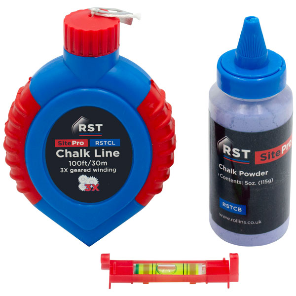 The RST Chalk Line lets you mark out a straight line between two points. It has a 3x geared winding system which means a faster rewind speed. The 30m (100ft) line is contained within a high impact ABS case to ensure it is tough enough to withstand normal day-to-day use.