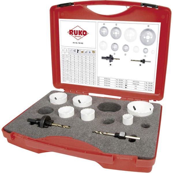 The RUKO HSS Co8 bi-metal hole saws in these sets have fine tooth spacing and are suitable for wood, PVC, metal, non-ferrous metal and stainless steel.