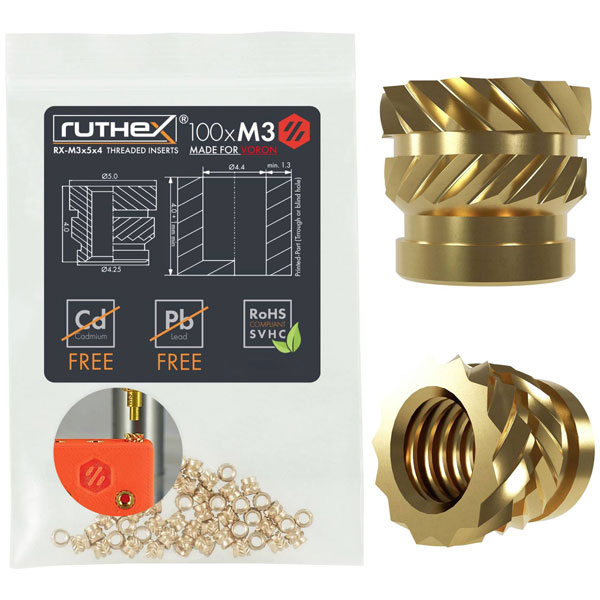 ruthex GEM3x5x4001 Threaded Insert for 3D Printers RXM3x5x4