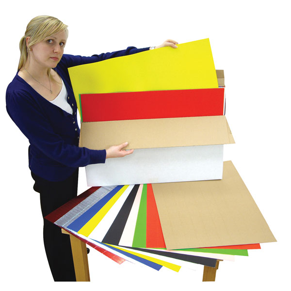 A class pack of 30 sheets of large format corrugated paper sheets. 20 sheets are bright colours, 10 sheets are metallic colours. There are 2 sheets of each colour and each sheet is 500 x 700mm.