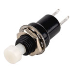 Miniature low cost non-illuminated push-to-make switch with an all-plastic body and chrome locking nut,