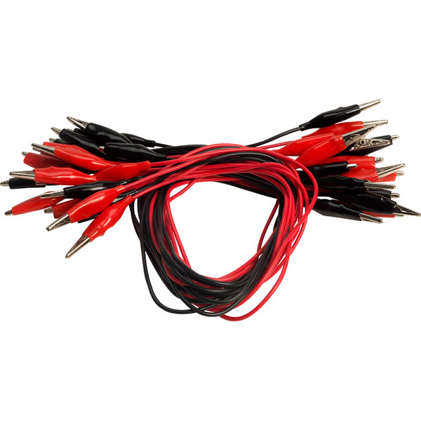 Pack of 460mm long crocodile clip leads supplied in a pack of 20 leads - 10 red and 10 black.
