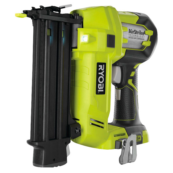 This 18V nailer from Ryobi is ideal for both the professional and DIY enthusiast looking for a fast and precise tool which can fire out 18G nails (1.2mm) between 15 and 50mm long, with two firing modes. The nailer has been manufactured to a high standard and is equipped with a host of excellent features, including Grip-Light technology, which engages twin LEDs by grasping the handle.