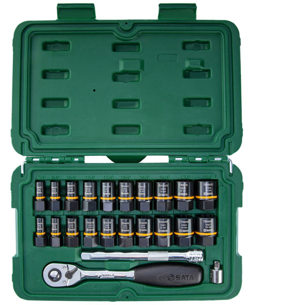 SATA BoltBiter fastener extraction tools are ideal for loosening rusted, rounded or stripped screw heads, nuts and bolts. The sockets have innovative tapered flutes that ensure easy seating onto a damaged fastener, and their hexagonal base allows use with impact guns, ratchets, wrenches or pliers.
