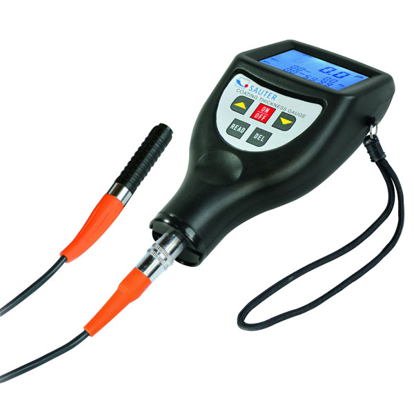 The Sauter TG1250-0.1FN Coating Thickness Meter is a premium thickness measuring device for paint coatings, lacquer coatings, etc. It has an external sensor that plugs into the meter housing.