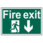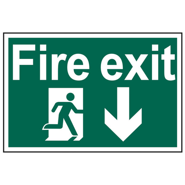 Message: 'Fire Exit'. Features a downwards pointing arrow.