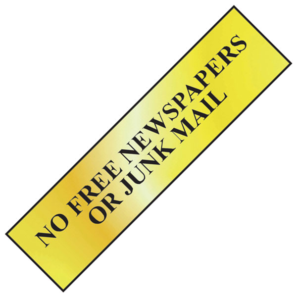Scan 6023 No Free Newspapers Or Junk Mail - Polished Brass Effect 200 x 50mm