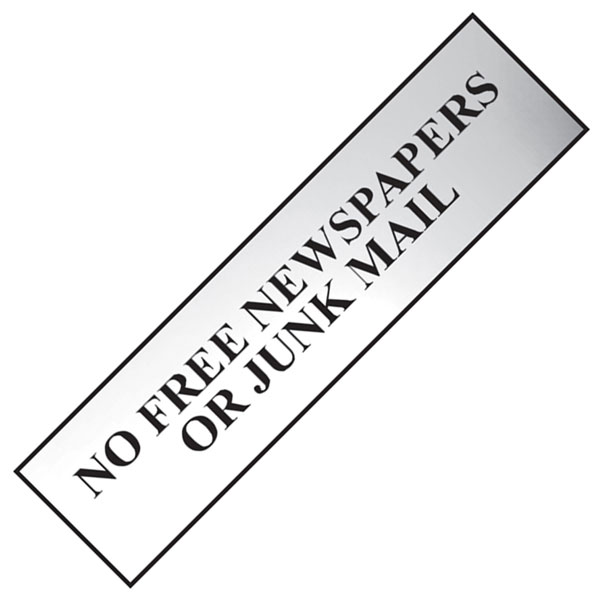 Scan 6023C No Free Newspapers Or Junk Mail - Polished Chrome Effect 200 x 50mm