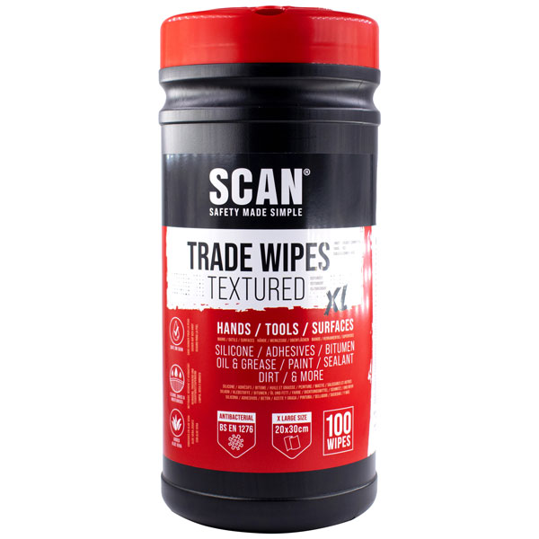 Each recyclable tub contains 100 x XL (20cm x 30cm) Scan Trade Wipes.