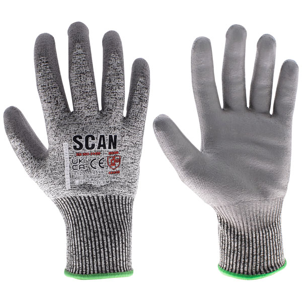 Scan Safety Cut D Gloves have polyurethane coated palms and fingers making them suitable for general handling of most materials, warehouse applications and much more. The Cut D liner makes these gloves highly cut and tear resistant. Ideal for work where blades and other sharp objects are present. 16% of the liner is made from recycled polyester, reducing the use of virgin plastics in manufacturing.