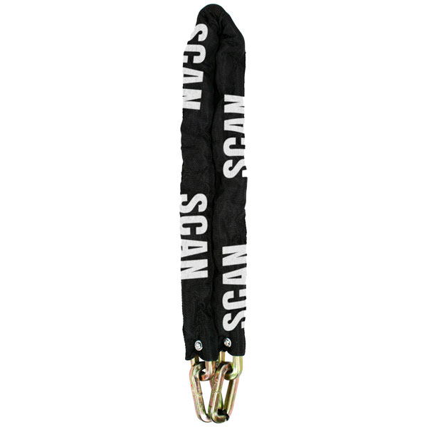 This Scan Heavy-Duty Chain is one metre in length and has heavy-duty 9mm hardened square section welded links. A nylon sleeve protects painted surfaces from scratches. Ideal for motorbikes, sheds and plant machinery.
