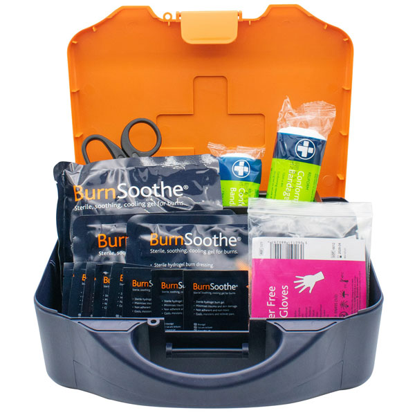 The Scan Burns Kit offers efficient treatment for burns, scalds, and sunburn injuries which can occur in both workplace and domestic environments. This comprehensive kit is well-suited for a wide range of industries and aligns with the guidelines of the Health and Safety Executive. Supplied in an orange integral aura box. Contains: