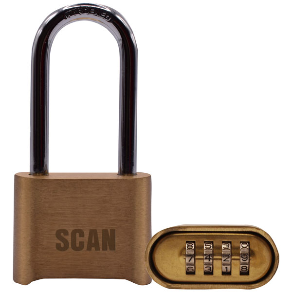 Scan ZA116-1L Brass Combination Padlock 50mm Long Shackle