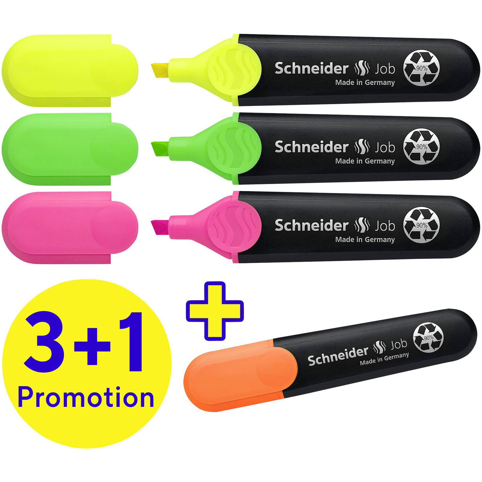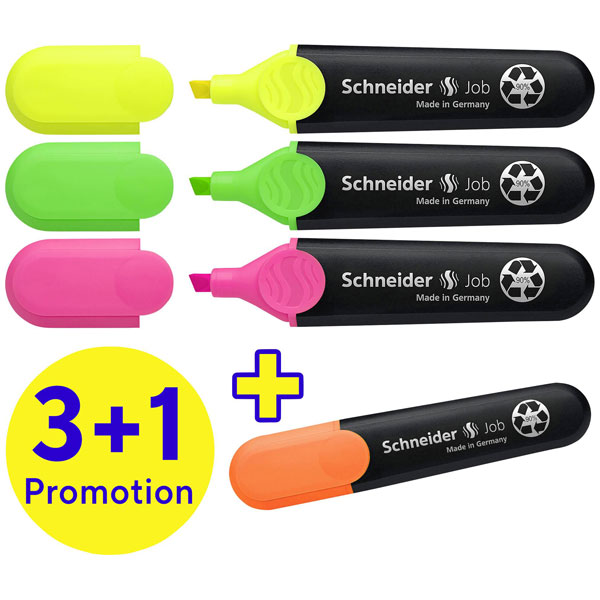Schneider Electric 115094 describes a set of assorted pens and markers designed for precision and clarity in technical applications. The product includes a selection of black and blue writing tools, encompassed within the Textmarker Job 4er Etui sortiert, optimised for engineering tasks that require precise annotation and clear mark-making. These instruments exhibit dependable performance for tasks such as drawing, outlining, and correcting; they are ideally suited for drafting detailed diagrams, annotating technical blueprints, and ensuring corrections are clearly visible on schematic presentations. Made by Schneider, a reputable manufacturer in the field of writing instruments, this set offers an efficient 3+1 action combination that supports various office and field engineering environments.