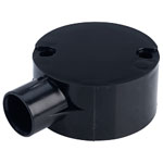 Tower black 1 way terminal boxes for 20mm diameter round PVC conduit from Schneider Electric.