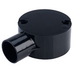 Tower black 1 way terminal boxes for 25mm diameter round PVC conduit from Schneider Electric.