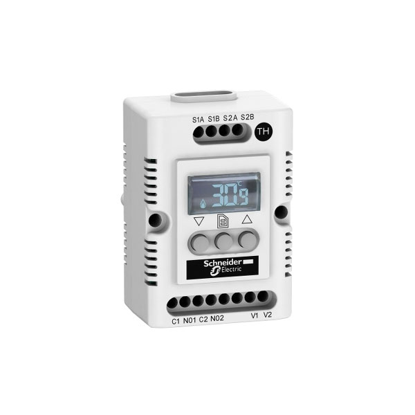 Electronic digital thermostat from the ClimaSys CC range from Schneider Electric. This device will display the temperature in both °C and °F on an OLED screen.