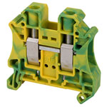 A green/yellow, DIN rail mounting 10mm² feed-through terminal from Schneider Electric's Linergy TR range.
