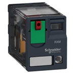 A 120V AC 4PDT relay from the Schneider Electric Zelio RXM series. This miniature plug-in relay has 4x changeover contacts and is ideal for use in industrial machines, building machinery, medical equipment, packaging machines, textile machines, HVAC, etc.