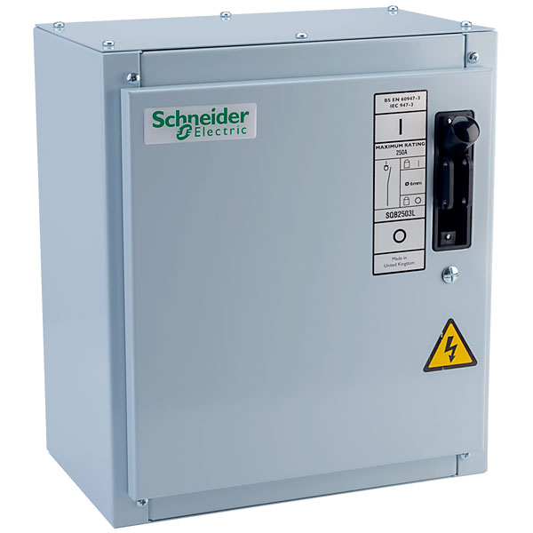 This 250A Schneider Electric TP&N Quadbreak switch fuse disconnector is a heavy-duty fuse product for use in commercial and industrial environments, providing isolation and traditional fuse protection for electrical loads.